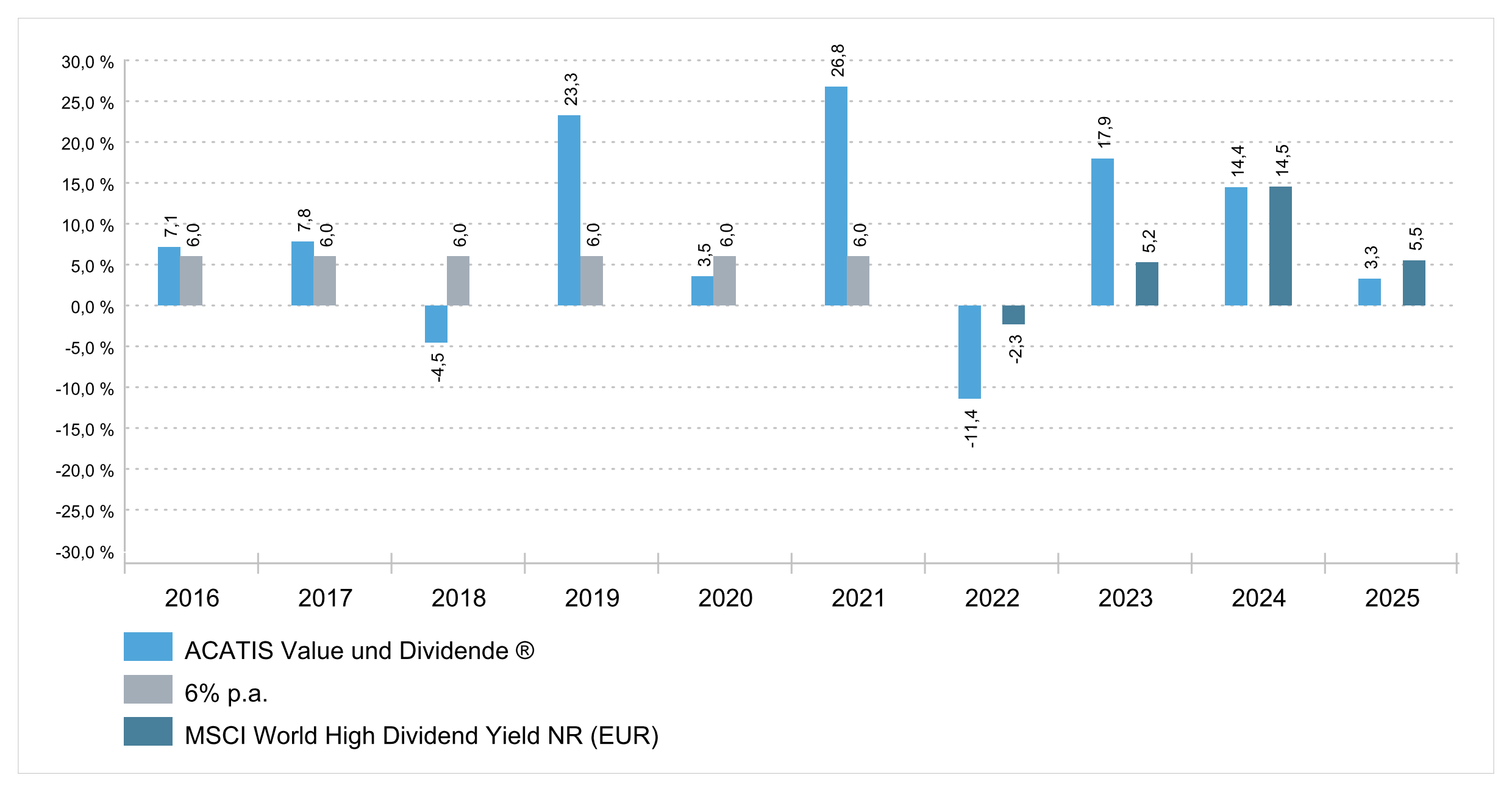 Wertentwicklung pro Kalenderjahr in Prozent